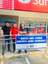 A escolha do banco Santander foi estratégica, pois é o banco que está jogando duro na mesa de negociação, propondo retirada de direitos e negando reajuste salarial com ganho real.